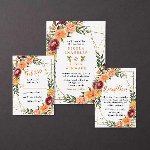 Autumn Burgundy and Orange Flowers WeddingDesigned by Nicola Winyard