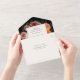 All in One Wedding invitation featuring a gold frame surrounded by autumn florals and greenery. Each card includes a perforated RSVP card that’s addressed and ready for your guests to send back in the mail. Customise with your information or click "click to customise further" to change the font style, size, colour or background colour.
