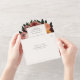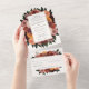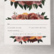 All in One Wedding invitation featuring a gold frame surrounded by autumn florals and greenery. Each card includes a perforated RSVP card that’s addressed and ready for your guests to send back in the mail. Customise with your information or click "click to customise further" to change the font style, size, colour or background colour.