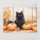 Autumn Cat and Pumpkins Postcard