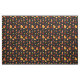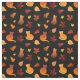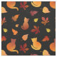 A pattern of silhouette ginger cats and Autumn leaves in burnt orange, yellow and red, on a black background. A great design for a cat mom who loves to sew.