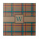 A soft raw umber base is crisscrossed by bands of port wine red, bright autumn orange, and rich jungle green in this pleasant plaid that combines trendy colours in a classic and cosy pattern perfect for fall. This tile can be framed to create a trivet or placed inside a wooden gift box lid. Tiles without a frame will also fit inside the large gift box to create a matching set. Customise the monogram with your initial to make it your own.
