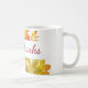 Ceramic coffee mug shown with a pretty fall leaves print.