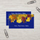 An eye-catching business card for many types of business, with blocks of fall colours, golden yellow, browns and maroons on a deep blue background. Fully and easily customisable.