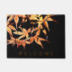 Customisable Fall Thanksgiving Door Mat with a stylised photograph of Japanese maple in autumn on black background. Don't forget the whole collection.