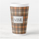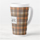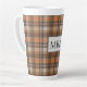 Autumn / Fall coloured plaid pattern features colours of orange, brown, gold and green. Personalise this stylish latte mug with monogram or name