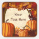 A graphic illustration of beautiful autumn leaves and pumpkins on a custom sticker. Original artwork: Copyright Charmaine Paulson
