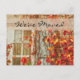 Autumn leaves rustic country We've Moved moving announcement postcard. Send your new address to family and friends. Beautiful colours of orange, red and yellow leaves climbing up the side of the house. Vintage retro antique white window and blue shutter. Brown brick house photo art. Image copyright Marg Seregelyi Photography.
