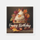 Autumn Cupcake with Colourful Fall Leaves Happy Birthday Paper Party Napkins