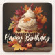Autumn Cupcake with Colourful Fall Leaves Birthday Square Paper Coaster