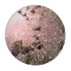 A pretty pink, white, yellow, green and black art design of sunlight reflected on water and falling autumn leaves.