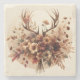 A bouquet of autumn flowers is intertwined with antlers creating an enchanting blend of nature and wildlife