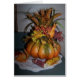 A lovely autumn display on front, mums on back, and an inside inspirational greeting comprise this card.