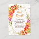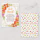 This fun and whimsical baby shower book request card features watercolor pomegranate, apples, grapes, mushrooms and foliage on a gold geometric frame. The text combines handwritten script and serif fonts for a stylish and modern look. This is perfect for a summer rustic baby shower.