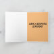 This card is great fun and good quality. I loved the humour inside and on the back. There is the opportunity to change the orientation of this card from landscape to portrait, which I did. It is relatively straightforward to amend the typeface to fit the new orientation. It was well packaged with no plastic. The printing on this card is excellent.