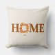 This throw pillow is shown in a off white colour with a autumn fall leaves print design with a home text.