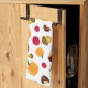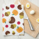 This kitchen towel features a colourful autumn harvest pattern with pumpkins, cranberries, acorns, and chestnuts on a white (customisable) background. Great for fall and Thanksgiving kitchen decor!