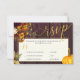 Rustic autumn fall flowers and pumpkin wedding invitation response card with meal options on a dark burugndy barn wood background.