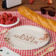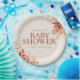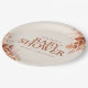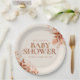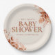 An elegant autumn fall baby shower paper plate featuring chic terracotta typography and rustic floral foliage. Designed by Thisisnotme©