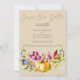 These save the date invitations are designed with a harvest bouquet using fall foliage and string lights! Accented with autumn fruits and modern fonts, these Save the Date announcements are sure to impress your guests. The back is designed using a string light pattern.  Makes a great announcement of your upcoming wedding for anyone that loves rustic design, botanical patterns, or floral elements.