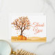 Autumn Fall Trees Pumpkin Thank You card. White Background. Orange Wordings. Love and Thanks, beautiful script font. Add your message on back or leave blank and hand write. For further customisation, please click the "Customise it" button and use our design tool to modify this template.