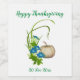 Autumn Fall White Pumpkin Floral Thanksgiving Wine Label