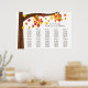 © 2013 Socialite Designs. Elegant autumn falling leaves seating chart for wedding reception attendees. The design incorporates a tree with falling leaves in gold, yellow, orange and red. The tree also has a heart with initials for the couple. Invitations and other products with this design are also available. Need HELP with customisation? Please do not hesitate to contact Socialite Designs with your requirements.