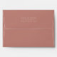 Chic solid colour dusty rose 5x7 envelope with return address on back flap. Envelope is lined with elegant watercolor earth tone Autumn botanical floral and foliage bouquet.