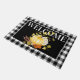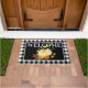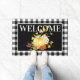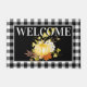 Autumn Floral Pumpkin Welcome Doormat features artistic pumpkin,flowers and Welcome sign in white & black plaids.A perfect design for Autumn,thanksgiving & Halloween.