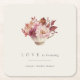 Autumn Floral Teacup Love Is Brewing Bridal Shower Square Paper Coaster