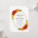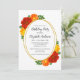 Autumn red, orange and gold florals bordering gold circle frame with eucalyptus and botanical greenery for a fall event