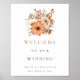Autumn Florals Welcome to Wedding. At the top, an elegant bouquet of autumnal florals in shades of terracotta, cream and browns, followed by your welcome message, names and wedding date which you can easily personalise.