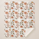 The picture shows a graceful pattern of stylized flowers in warm orange and brown tones, surrounded by green leaves and delicate twigs. The harmonious repetition of the elements radiates a quiet autumn atmosphere that provides warmth and naturalness. It creates a sense of security and aesthetic balance.