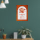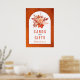 Autumn flowers and foliage burnt orange arch botanical cards and gifts wedding poster. This beautiful wedding design features an arch frame on burnt orange stained background. In the frame there is your text and a bouquet of dalia flowers and leaves in fall colors.