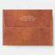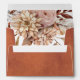 Autumn flowers and foliage terracotta fall wedding envelope. This lovely wedding design features a terracotta coloured stained background on the outside. The inside includes a bouquet of dalias and leaves in autumn colours.