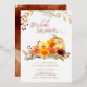 Fall bridal shower invitation with luxury rose gold foil typography - perfect for fall, pumpkin season and thanksgiving. Watercolor design features autumn leaves, flowers and pumpkin in warm earthy colours.