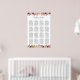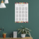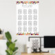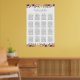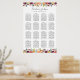 This rustic floral wedding seating chart accommodates 16 tables with up to 10 guests at each table. Pretty autumn flowers create a border at the top and bottom of the chart. Customise with the couple's names at the top, then add the wedding guests' names under each table heading.