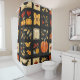 This shower curtain showcases a folk art quilt-style patchwork, filled with rustic and autumnal motifs. Arranged in a grid of squares and rectangles, it features pumpkins, falling leaves, birds, hearts, and stars, all rendered in a cosy primitive style. The warm earthy colour palette of orange, brown, gold, black, red, and cream creates a harvest-inspired aesthetic perfect for autumn, Thanksgiving, farmhouse décor, and country living. With visible stitching details and a homespun charm, this pattern embodies the traditional, handmade look of rustic quilting while celebrating the season’s bounty.