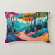 The cushion is small to medium sized. It can be washed. It is well constructed. The material used is pleasant and feels decent quality. It has a very slight plush feel which is good. It is well labelled and its care clearly stated. Theres nothing not to like about it. All in all a good item. The deduction of one star overall is due to long delays in delivery to the UK. It's not clear if this was due to Zazzle or somewhere else in the chain as I did not receive status updates of dispatch or progress. I cannot comment anymore on that other than to say that was our experience but it may not be the same for you. The printing was surprisingly close to what we were expecting. Its an art piece and on material so its hard to assess the precision of printing but it seems close to the original. The soft lines are reproductions of the original. The colour is a fair reflection of the painting. This was printed in the US and it looks like US quality. No issues.