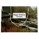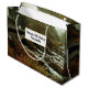 Gift bag with a nature photograph. Moody and beautiful landscape. A secluded stone bridge beside a lively river with a forest and mountains surrounding the area.