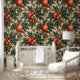 Big, russet fruits and little red and orange berries are interspersed with green leaves on this beautiful, fall-themed wallpaper. Will add colour to your room all year round!