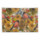 Hand-drawn autumn pattern featuring bullfinches, dahlia and chrysanthemum flowers, various berries, leaves and bugs