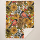 Hand-drawn autumn pattern featuring bullfinches, dahlia and chrysanthemum flowers, various berries, leaves and bugs