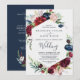 This autumn garden burgundy all in one wedding invitation card is perfect for a fall wedding. The design features stunning blush pink, red, navy and burgundy watercolor flowers, blossoms and green leaves arranged in a lively fall floral frame. Save paper by including the details on the back of the wedding invitation instead of on a separate enclosure card. Include the RSVP info as well if your guest will be replying electronically (optional).