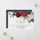 These autumn garden burgundy elopement announcement cards have a beautiful fall design. The floral design features stunning blush pink, red, navy and burgundy watercolor flowers, blossoms and green leaves arranged in a lively fall bouquet. Personalise the card with your marriage details, and use the template section on the back for reception information, to announce a change of address, or for any other details you would like to share.