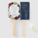 This autumn garden burgundy wedding program fan is perfect for a fall wedding. The floral design features stunning blush pink, red, navy and burgundy watercolor flowers, blossoms and green leaves arranged in a lively fall wreath. Include the name of the bride and groom, the wedding date and location, thank you message, order of service, and bridal party. Order your programs assembled or non-assembled.