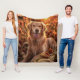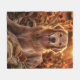 Embrace the rustic charm of Autumn with our stunning blanket showcasing a Golden Retriever in a harvest field as the sun sets in the background.