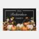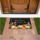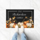 Autumn Grace Personalised Doormat: Welcome guests in style with this elegant fall welcome doormat featuring a minimalist design perfect for the season. The black background is framed with a crisp white border that encloses a customisable name in elegant, white script at the centre, adding a personal touch to your entryway. At the bottom, a charming border of watercolor leaves, pumpkins, and vines in rich autumn hues beautifully overlaps the frame, bringing warmth and festive fall vibes to your doorstep. This personalised fall doormat is the ideal accent for creating a cosy, inviting atmosphere for your home this autumn. Whether you're looking to elevate your front porch décor or seeking the perfect housewarming gift, this custom fall welcome mat combines elegance with seasonal charm, making it both functional and stylish.