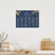 This autumn greenery navy horizontal alphabetical seating chart is perfect for a fall wedding. This horizontal sign can be used to organise your guests alphabetically or by table number by changing the headings. The modern rustic design features navy blue, sage green and gold leaves with sprigs of dark blue flowers. This wedding poster includes enough room for up to about 100 guests. Make room for more (or less) guests by clicking the "customise" button and decrease or increase the size of the font. In addition to the placement of each guest, personalise this sign with the names of the bride and groom and the wedding date.