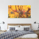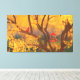 In a vivid yellow maple a male cardinal perches, keeping watch over his mate on the nearby bird feeder.